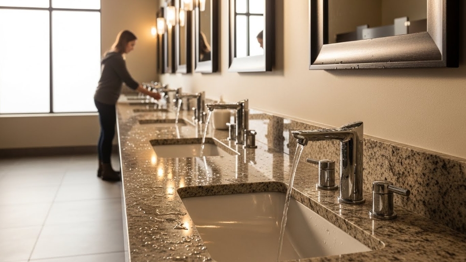 Conservation is not only about outlet flow rate. It is also about whether the faucet activates only when intended, shuts off consistently, and uses timeouts and metering effectively.