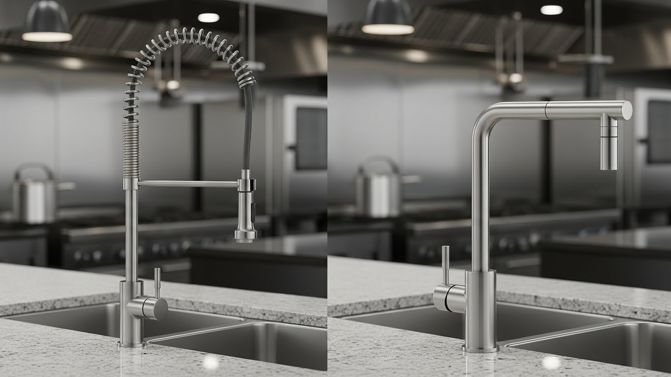 | Krowne Metal | Tier 2 (Foodservice Specialist) | 7.5 / 10 | Professional-grade restaurant faucets and pre-rinse sprayers for demanding kitchens | Low | Very Good | Good–Very Good | Industrial / Kitchen | Restaurants, commercial kitchens |